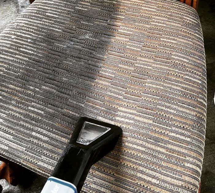 - After that, depending on the fabric, your upholstery professional will use hot water extraction or dry upholstery cleaning to remove any soils and stains from your upholstery.
